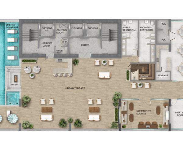 La ubicación de Seaside House, brinda fácil acceso a súpermercados, centros comerciales farmacias, bancos, restaurantes, parques y otras atracciones cercanas como la Cinta Costera, Ciclovía y el Club de yates. Los residentes pueden disfrutar de la conveniencia de tener absolutamente todo a su alcance. Las espectaculares áreas sociales están divididas en dos plantas con espacios pensados para el máximo disfrute de residentes e invitados.